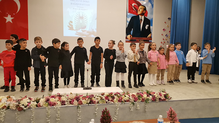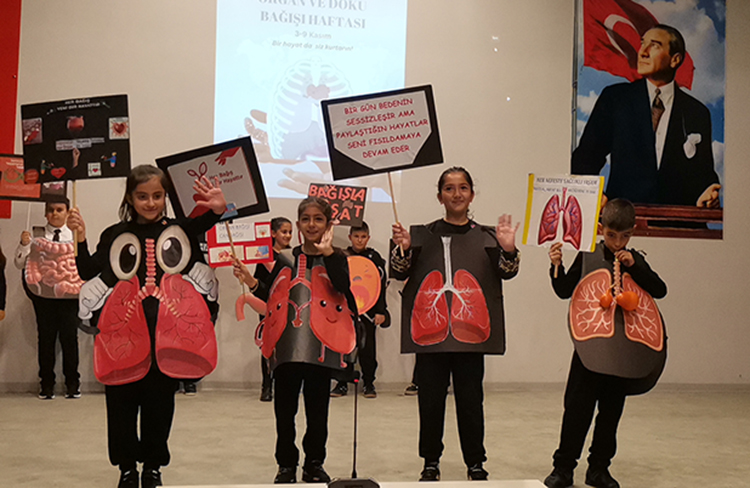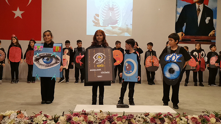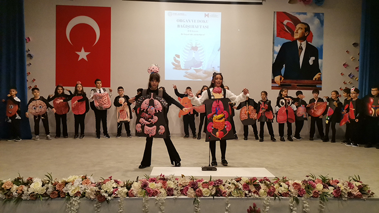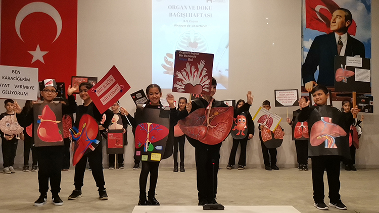 Konferans salonunu dolduran veliler, kimi “kalp”, kimi “beyin”, kimi “akciğer” rolündeki miniklerin sahne sunumlarıyla hem güldü hem duygulandı. Öğrencilerin hazırladığı resim sergisi ise, etkinliğe ayrı bir anlam kattı. Özellikle karaciğer nakli geçiren bir öğrencinin yakını tarafından çizilen tablo, salonu derinden etkiledi.